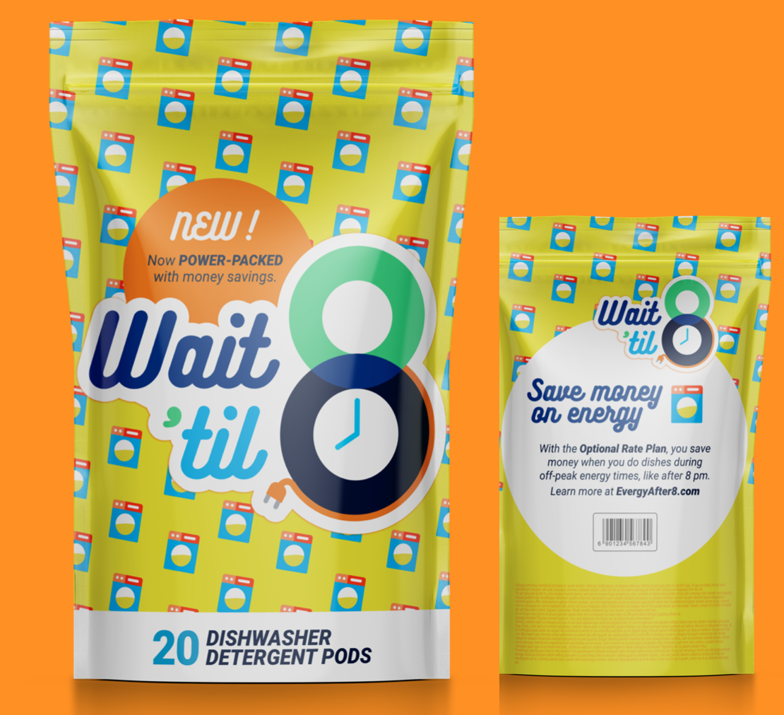 Wait ‘til 8 is the idea of getting people to wait until after 8 p.m. to use major appliances and thus, save money. The campaign included a wide variety of data visualizations, direct mail, email, digital, and a landing page that was brought to life via highly stylized images we shot and created. In addition to digital and traditional media, we created an actual product line for the appliances to put on pause until off-peak energy times, like after 8 pm.